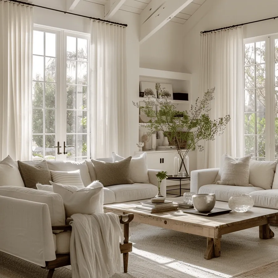 Before we continue with this one, you tell us, who said curtains had to stand alone? The Blinds with Curtains Combo allows you to enjoy the best of both worlds. This stylish arrangement features sheer or light fabric curtains paired with slim, light-stained wood or simple blinds. The combination creates an elegant, sophisticated look without overwhelming the space. In a living room, this pairing enhances the control you have over natural light while maintaining an open, welcoming atmosphere. The sheer curtains let in soft light while adding a touch of softness, and the blinds offer practical light adjustment. This approach ensures that your living room feels bright and airy, rather than closed off.