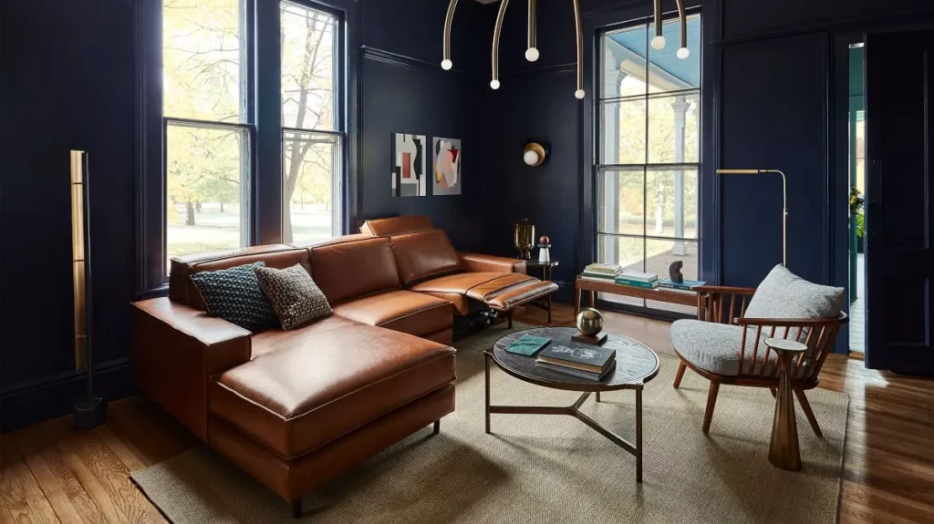 The Parker sofa is impressively wide, and walnut curves and inviting seats that depict its mid-century modern style. Its chaise ensures nappability and medium-firm, and upright seats. It is available in 181 upholstery options and several styles. It suits maximalist or minimal décor, making it a worthy conversation and striking piece for the hosts.
