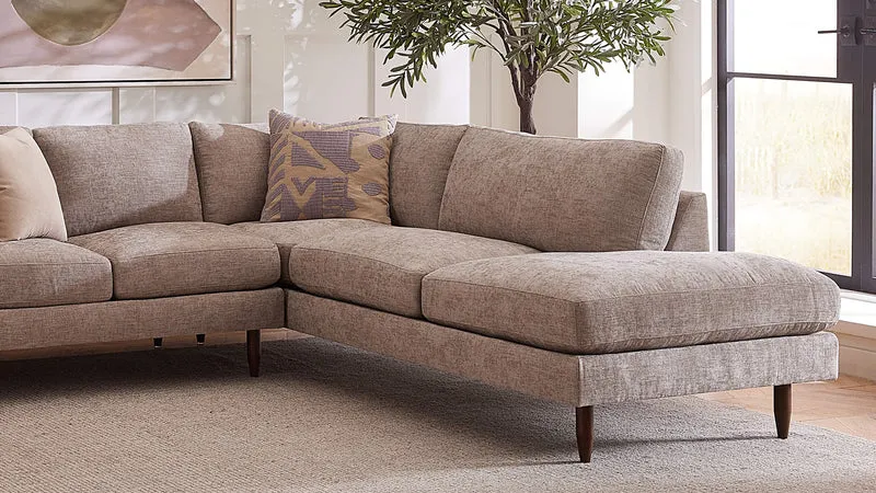 The impressive Harris sectional is known for its sturdy build and customizable design. It has shorter cushions and is higher platform. It is safe for pets and kids with a fully upholstered design with no exposed hardware. It is a performance upholstery that resists scratches and spills.