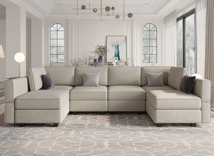 If you are looking for a sectional sofa for a small space offering durability and comfort, this is the one to choose. There are 15 configurations available with this modular sectional sofa with storage ottoman. Their key features include easy assembly, a movable storage ottoman, and stain-resistant fabric. It further includes hidden ottoman storage and firm cushions. If you are looking for the best U-shaped sectional couch that combines flexibility and functionality, this option stands out dew to fabric colors and choices.