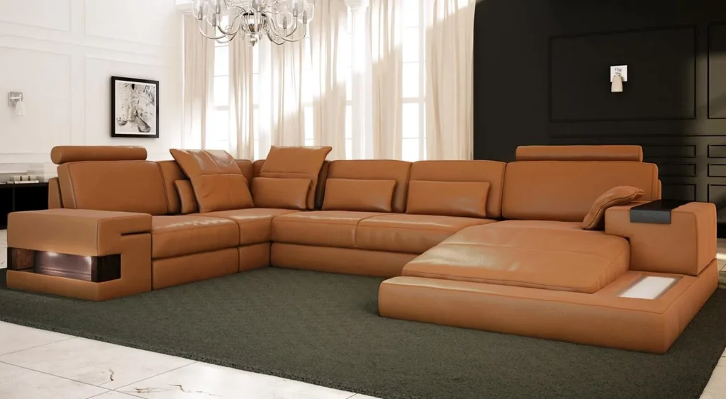 This large U-shaped sectional features timeless design and comfort, offering a spacious chaise and cozy seating. The leather sectional boasts long-lasting durability, a charming patina, and easy setup. But if you own a pet, then you should consider avoiding it; otherwise, leather may get affected because of scratches. However, if you are a pet-free buyer, though, this large U-shaped sectional if for you as a premium choice because of its thoughtful design and refined aesthetics.