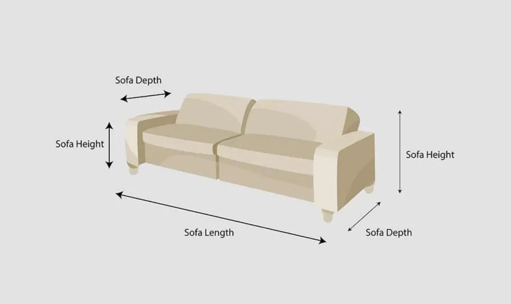 The front-to-back depth includes the distance from the back edge of the sofa to the front of the seat cushion, and it plays an important role in figuring out how to get a couch through a door. Particularly for houses with narrow hallways or tight corners.