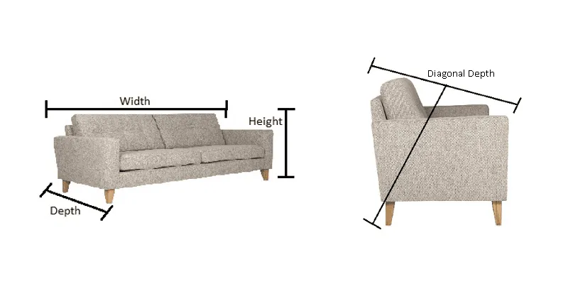 Diagonal depth measurement is significantly helpful, it is not feasible to use the straight path while wondering how to get a couch through a door. Measure from the top front corner to the bottom back corner of the backrest or armrest.